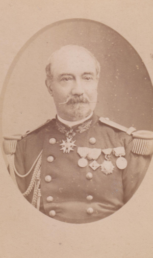 retraite et officier de la Légion d'Honneur. Il pose ici à gauche avec son fils, Edouard, né en 1857 à Beziers, qui suivra