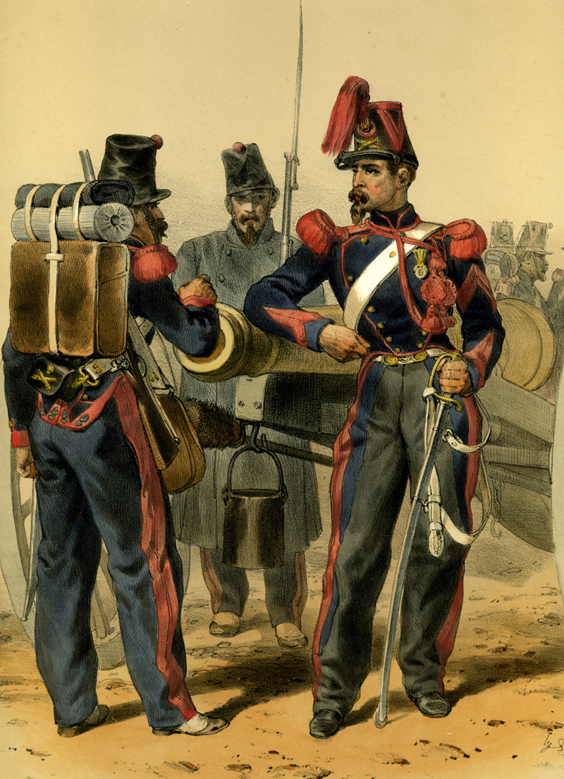 L'uniforme des artilleurs est resté pratiquement inchangé durant la Second Empire, les deux règlements encadrant l'uniforme datant de 1846, puis de 1860.