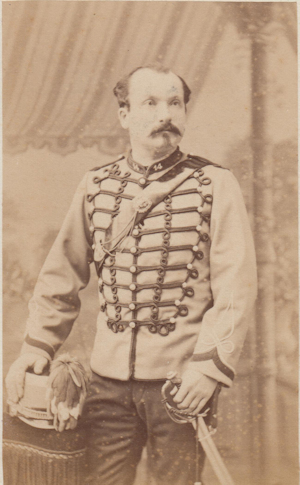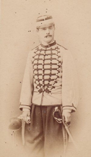 De 1872 à 1887, le collet des officiers est écarlate, à bords arrondis et plats, laissant voir le col blanc. En 1872, il est orné d'un cor de chasse, mais dès le 16/5/1872, ce cor est remplacé par le numéro du régiment.