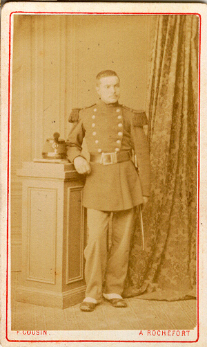 La tunique des officiers est remplacée par le dolman du modèle général des troupes à pied. A la même date le képi remplace le schako, il est orné de l'ancre jusqu'en 1890, puis est remplacé par le numéro du régiment.