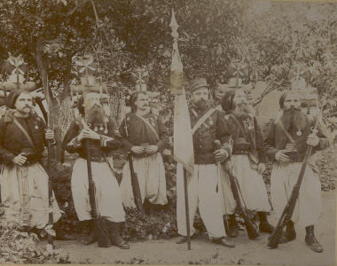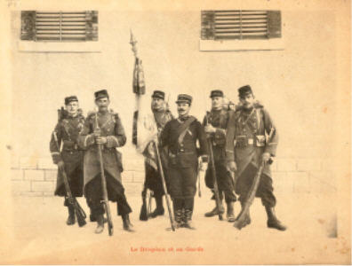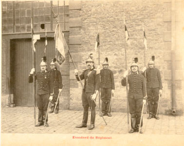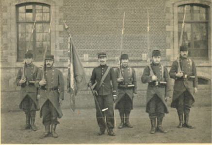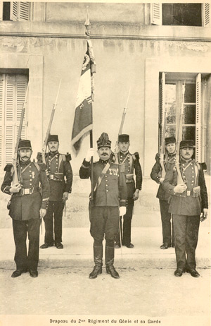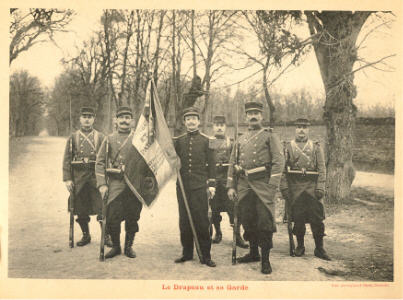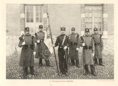A partir de 1888, la Garde du drapeau est composé, pour l'infanterie, d'un sous officier et de quatre soldats de première classe. Un officier est chargé de porter le drapeau. Lors de la parade, il se place au premier rang, avec à sa droite le sous officier et à sa gauche un soldat. Les trois autres soldats forment le 2em rang.