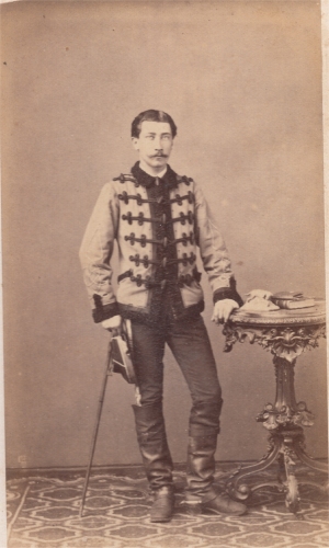 Saint Cyrien de la promotion 1864-1866. Il est ici photographié dans la nouvelle tenue de cavalerie légère donnée à certains régiments de chasseurs en 1868.