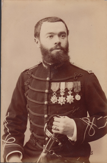 arborant sa légion d'honneur, sa médaille du Tonkin, l'ordre royal du