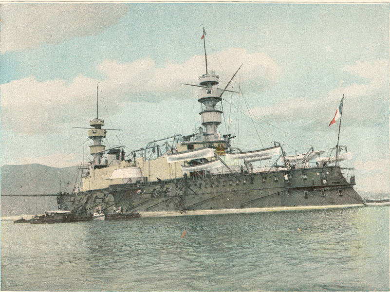 Quatre grosses pièces de 34 en tourelle sur le pont en tourelle barbette. 17 canons de 14 en batterie.