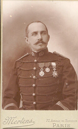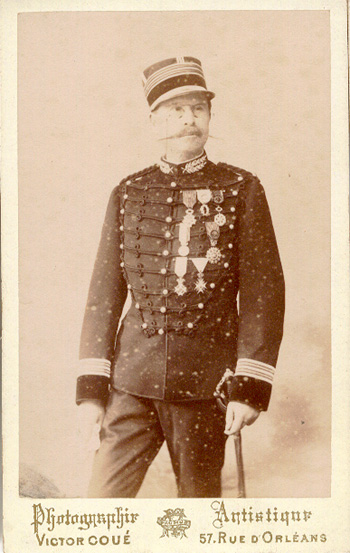 Il était officier de la Légion d’honneur, officier de l’Instruction publique, officier du Mérite agricole, médaille d’honneur d’argent de 2e classe de sauvetage, officier de l’Ordre du Nicham Iftikar de Tunisie, officier de l’Ordre royal du Sauveur de Grèce, officier de l’Ordre de Saint-Sava (Serbie), officier de l’Ordre du Soleil levant (Perse). Il était titulaire en outre titulaire de vingt-six médailles de concours, prix et témoignages de satisfaction pour des travaux scientifiques et militaires. Photo Coué (Saumur) |