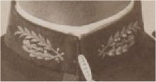 La broderie au collet figure un caducée, entouré de feuilles de lauriers. |