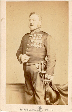 Jean André Napoléon Perier Né à Lyon le 2/2/1806, entré comme élève à l'école militaire du val de Grâce en 1829, il est nommé sous aide major en 1831 et envoyé au siège d'Anvers. De retour à Paris après la campagne, il est attaché en 1834 comme aide major de 2e classe au service des Invalides et remarqué par le baron Larrey, ancien chirurgien de la Grande Armée qui l'emmene avec lui dans le midi de la France pour lutter contre l'épidémie de choléra. Admis dans l'intimité de la famille, Périer épouse la fille de Larrey et devient ainsi le beau frère du sujet de la précédente biographie. Reçu docteur en médecine en 1836, nommé successivement médecin major, médecin principal, il sert en Algérie, en Orient et durant la campagne d'Italie de 1859, il est médecin en chef du 2e corps de l'armée. Périer revient à Paris comme médecin en chef des Invalides en 1860 et parvient au grade de médecin principal de 1ere classe, officier de la légion d'Honneur. Son goût pour l'étude et ses aptitudes scientifiques l'avaient incité à s'occuper spécialement d'histoire et d'ethnologie. Membre dès 1840 de la commission chargée de l'exploration scientifique de l'Algérie, il étudie l'hygiène civile et militaire du pays. Attaché aux travaux de la société d'antropologie, il publie aussi de nombreuses études sur la perfectibilité des races, la consanguinité et l'hérédité. Il est mort à Paris le 12/5/1860. Photo Crémière (Paris) |