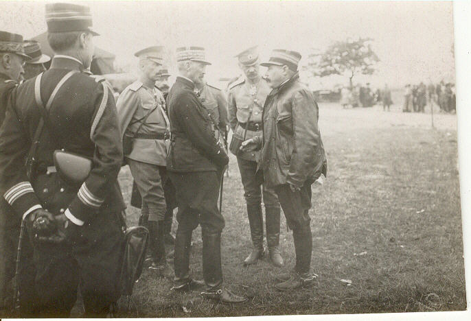 Le colonel Estienne, patron de l'aviation, fait son rapport au généralissime Michel, sous l'oeil attentif de deux officiers russes.