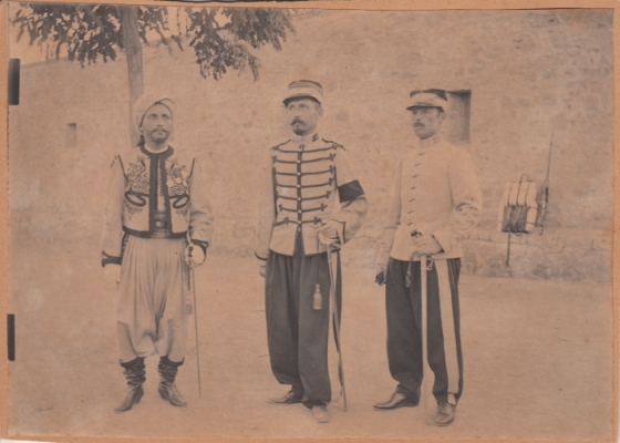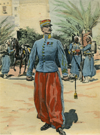 uniformes des officiers. De g à d : Officier indigène, officier tenue de 1884,