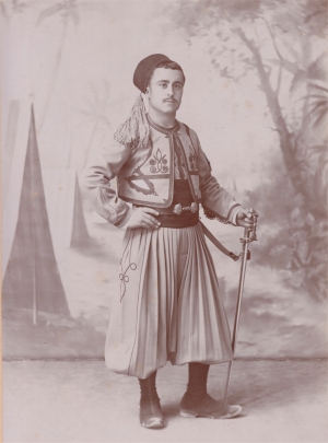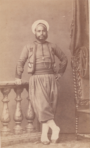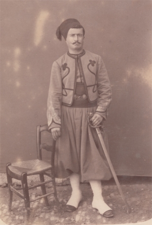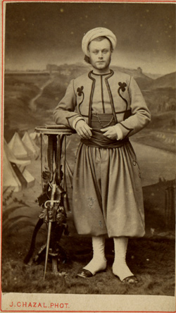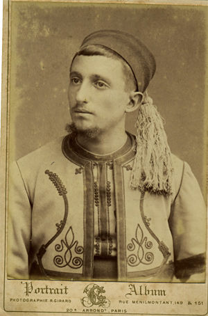 d'un pantalon orné de chamarrures en soie noire. Chéchia et turban, bottes