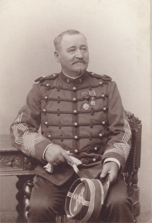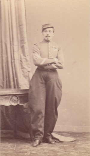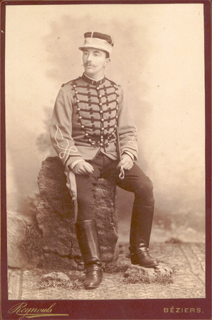 En 1902, le dolman des officiers est remplacé par une tunique gris de fer à collet, pattes et parements garances.