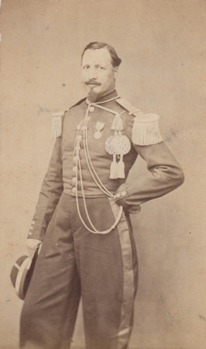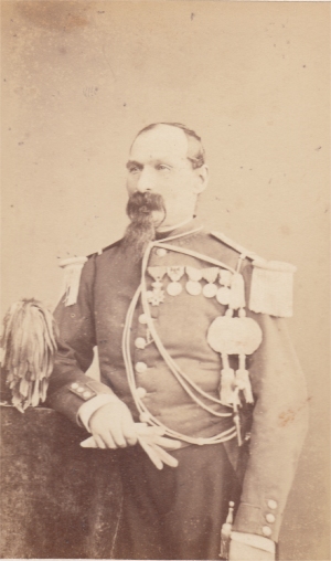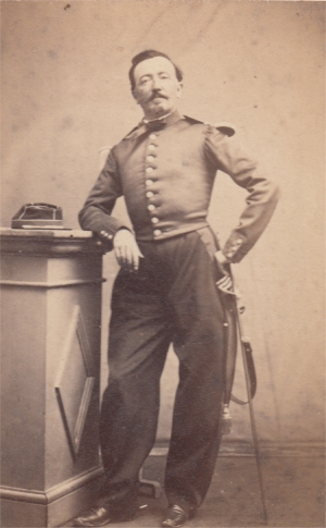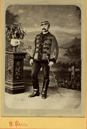 Les officiers portent à partir de 1872 le dolman du type de l'artillerie, à col garance avec le numéro de l'escadron. Une tresse de soie noire souligne le parement (à la différence des officiers d'artillerie). Les galons sont en forme de fer de lance avec noeud hongrois. Un schako équipe les officiers jusqu'en 1883, date à laquelle il est remplacé par un képi.