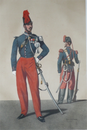 en crin garance. Buffleteries blanches.