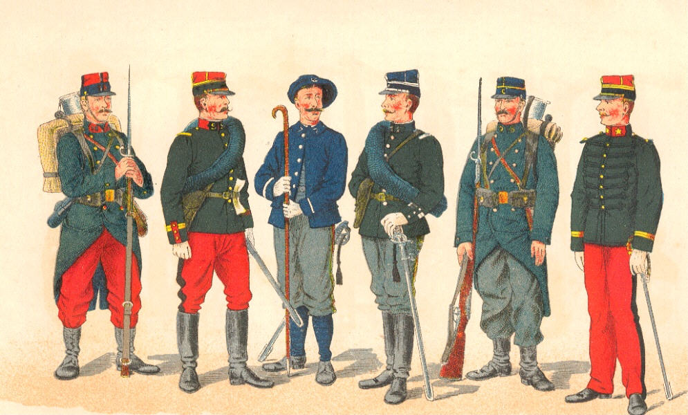 Infanterie (fantassin et officier), Officier de chasseurs alpins, Chasseurs à pied (officier et chasseur), Officier d'Administration