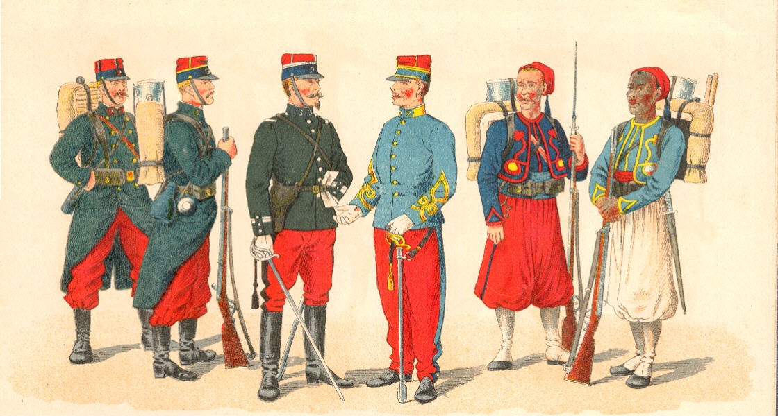 Soldat de la légion étrangère, Infanterie légère d'Afrique (zéphyr et officier), Officier de tirailleurs algériens, Zouave et Turco