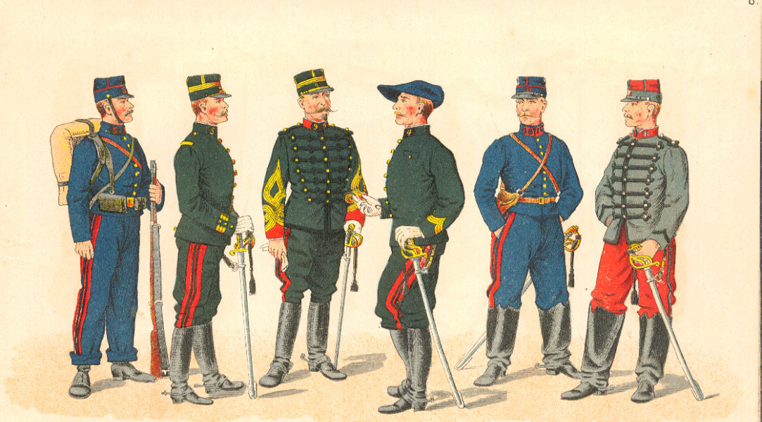 Génie (sapeur et officier) , Officier d'artillerie, Officier d'artillerie de montagne, Canonnier, Train