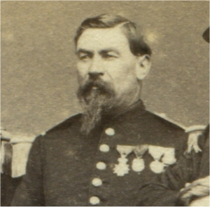 Debout au centre, le commandant de Paillot. A sa droite, le capitaine Gasselin, adjudant major et à sa gauche la capitaine Honnorat, capitaine major.