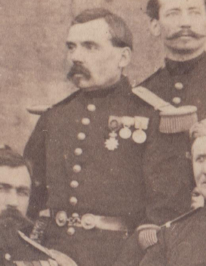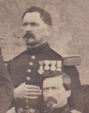 Lors de la campagne d'Italie, il a été promu officier et a rejoint le 1er régiment du Génie après la guerre. Envoyé à l'expédition de Chine (28/12/59-16/2/62), il y a reçu la croix de la légion d'Honneur (29/12/1860) et la médaille de Chine que l'on distingue sur cette photographie.