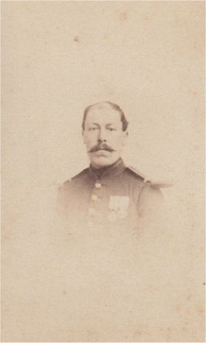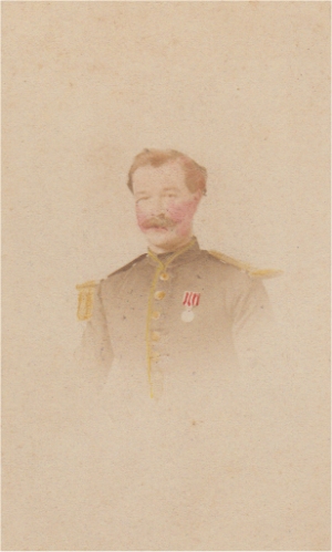 Ancien commandant au 3e régiment des grenadiers de la Garde. Lieutenant Colonel du 26e régiment d'infanterie depuis le 25/12/1867, il est blessé à Rezonville. Il se distingue lors des opérations contre la Commune et finit sa carrière comme colonel du 51e régiment d'infanterie. Photo Beaudelaire (Strasbourg) |