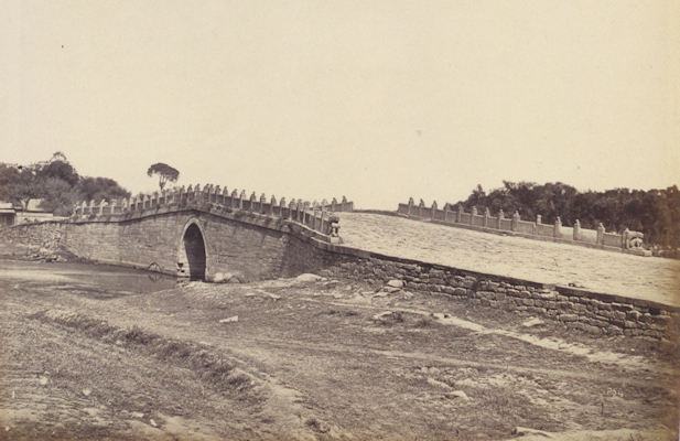 "Le pont, monument grandiose d'une civilisation vieillie, présentait alors un spectacle remarquable: des fantassins richement vêtus agitaient des étendards et répondaient à découvert, par des feux peu meurtriers, à celui de notre artillerie et de notre mousqueterie. Les cavaliers, si ardents le matin, avaient disparu et l'élite de l'armée, les Tartares de la bannière impériale, se dévouaient pour couvrir une retraite précipitée. Au bout d'une demi-heure, nos batteries avaient tué un grand nombre de défenseurs et fait taire leurs canons. Le général de Montauban fait sonner la charge, le général Collineau, avec son avant-garde, enlève le pont au pas de course. Les servants des dix pièces qui défendaient le pont se font tous tuer l'un après l'autre sur leurs pièces par les chasseurs du 2e bataillon.