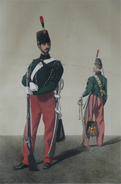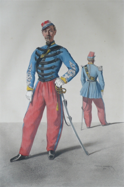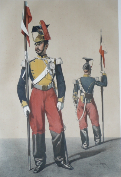 En 1858, le dessinateur Armand Dumarescq reçoit commande du ministre de la guerre d'un recueil d'illustrations représentant les uniformes de l'armée française. Cet ouvrage "uniformes de l'armée française en 1861" suit une précédente commande émise en 1856 sur les uniformes de la Garde Impériale.