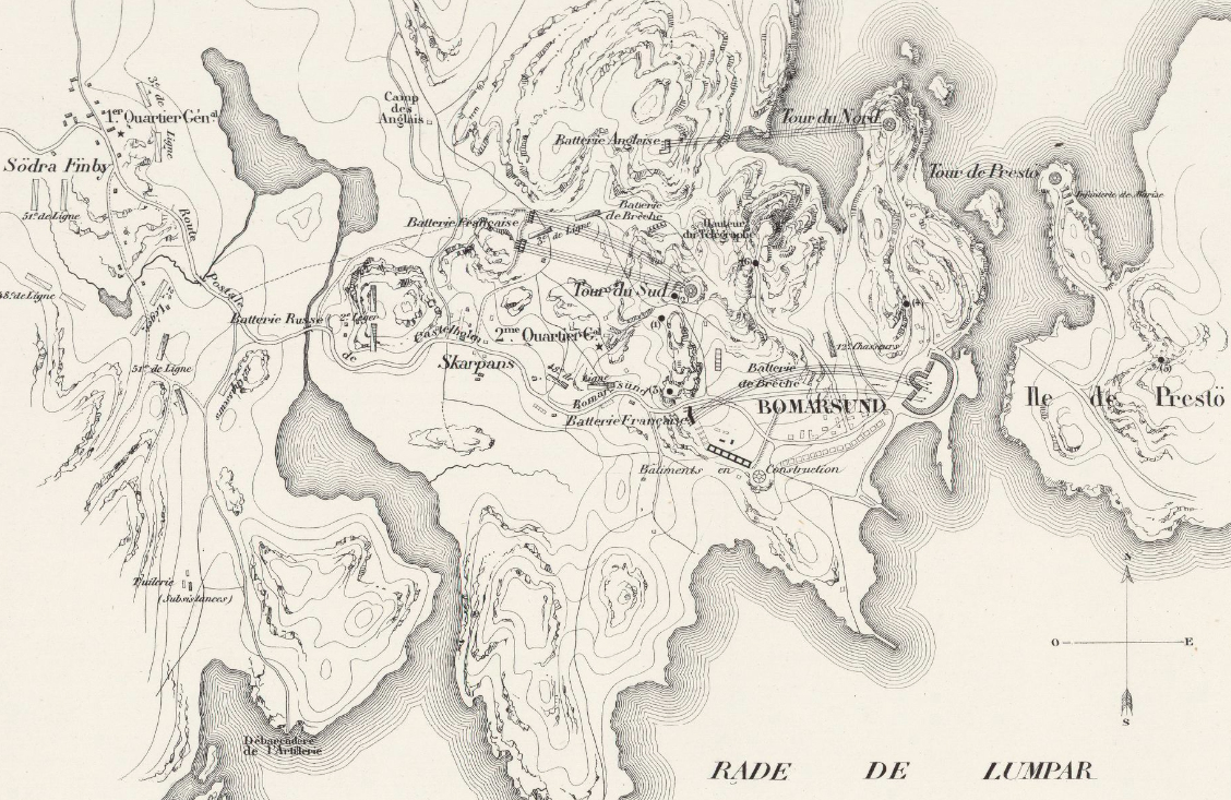 Protégée par l'imposante forteresse de Bomarsund qui bien qu'inachevée ne peut pas être vaincue par les forces navales seules, le contingent français débarque dans l'île le 8 aout.