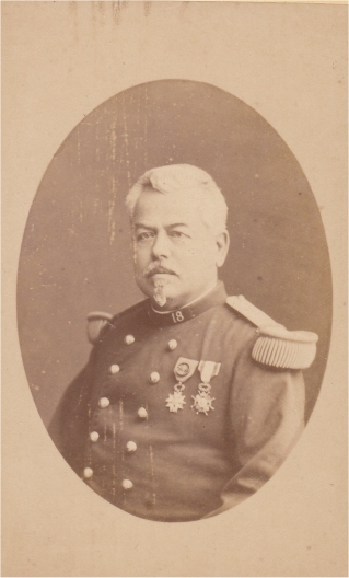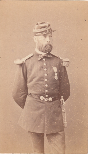 servi 9 ans en Algérie aux tirailleurs indigènes, puis en Cochinchine. Chef de bataillon le 27/2/1869, il est nommé