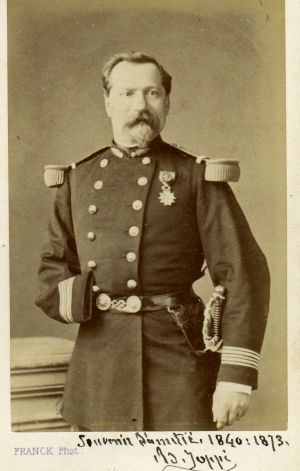Philippe Adolphe Joppé Lors de la bataille de Rezonville, Joppé commande le 2e bataillon du 2e régiment des grenadiers de la Garde. Le texte suivant est tiré de l'ouvrage "Français et Allemands" de Dick de Lonlay : Vers deux heures, Joppé reçoit un premier coup de feu qui lui coupe le biceps du bras droit. "Je ne sentais pas la souffrance racontait plus tard cet officier supérieur aussi modeste que brave ; je restai, je n'avais pas grand mérite". Vers trois heures un coup de mitraille lui brise le cubitus du même bras, depuis le poignet jusqu'au coude, sans atteindre toutefois le radius. Joppé regarde alors derrière lui et aperçoit le général Le Poitevin de la Croix et son aide de camp qui viennent d'avoir leurs chevaux tués sous eux. Il lève son bras blessé et, sur un signe affirmatif du général, va remettre le commandement de son bataillon au capitaine Normand. Puis l'intrépide blessé gagne, seul et à pied, l'ambulance de Rezonville. Les médecins ne lui laissent pas ignorer qu'il devra subir l'amputation. Après un pansement sommaire, il est mis sur un cacolet et conduit à Gravelotte où vers cinq heures il est amputé du bras droit par le docteur Boulogne. Dans le trajet du champ de bataille vers l'ambulance volante de Rezonville, l'ordonnance du commandant fit remarquer à son officier que celui-ci était blessé au pied. le commandant, en effet, avait eu le troisième orteil coupé, mais jusque là, dans la chaleur du combat, il ne s'était pas aperçu de cette troisième blessure. Le commandant Joppé a été transporté sur un cacolet de l'ambulance volante de Rezonville à l'ambulance installée dans la maison de poste de Gravelotte, où il doit subit l'amputation du bras droit. Au moment où il descend de son cacolet pour entrer dans cette maison, une jambe avec sa botte et son pantalon bleu d'artilleur à double bande rouge passe devant ses yeux jetée par la fenêtre de la chambre, où les médecins taillent et charcutent. Le commandant entre dans cette pièce. Près du patient se tient un vieux grenadier chevronné, médaillé, le bras fracassé tenant à peine par quelques lambeaux de chair, et qui attend patiemment son tour d'amputation. Le chef de bataillon Joppé le reconnaît. C'est un grenadier de son régiment, nommé Jacquot, planton du lieutenant colonel de Maisonneuve. Les chirurgiens font remarquer à l'officier blessé que chacun passe à son tour ; mais Jacquot croit devoir insister pour que son supérieur passe avant lui et celui-ci accepte les honneurs du couteau. Il est ici pris en photo comme lieutenant colonel. Il terminera sa carrière comme colonel, commandant en second le prytannée militaire de la Flêche. Photo Franck (Paris) |