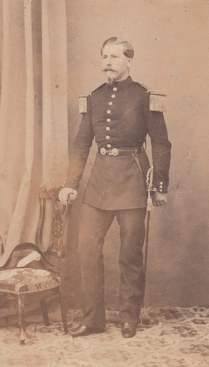 pommadés comme pour le bal, l'officier français place un sac d'infanterie qui