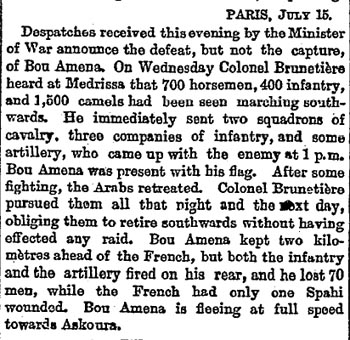 Le 30/11/1865, il combat à Paonos et reçoit la croix d'officier de la Légion d'Honneur le 5/2/66. En Août 1868, il est mis à la disposition du département de la Marine, puis reprend du service au 1e Spahis sénégalais en septembre 1869.