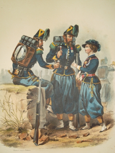 En 1859, le dessinateur Lalaisse publie un album sur les cantinières de l'armée du Second Empire. Illustré de 28 magnifiques planches in folio en couleur, il détaille les tenues de ces femmes, dans des poses souvent naives.