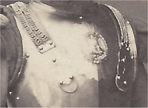Les officiers portent en grande tenue, la cuirasse, la tunique bleue, avec les gants crespin, le pantalon blanc et les bottes montantes.