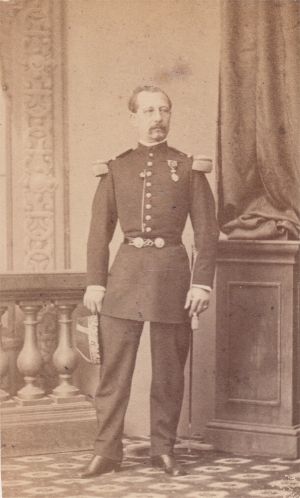 De retour dans la troupe, il est Chef de bataillon au 1e régiment de tirailleurs (6/9/1859 - photo de gauche). Il fait campagne en Syrie, puis a l'honneur de commander son bataillon (le 3e) à Paris lorsque celui ci est détaché dans la Garde Impériale de 1863 à 1864. Il participe enfin activement à la colonne de repression de 1864.