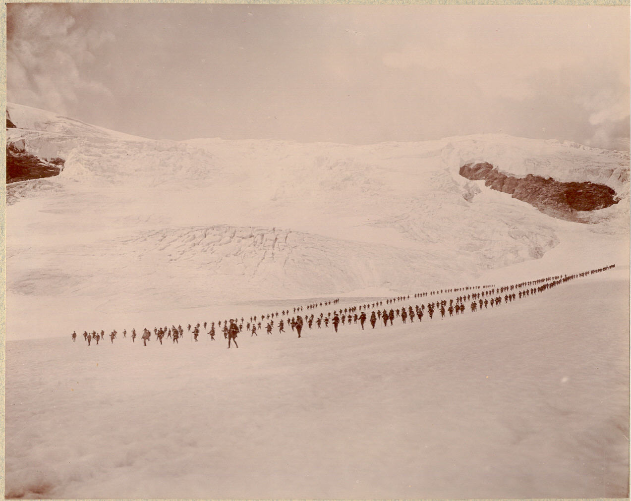 La traversée du glacier du Dôme de chasse forêt par le 12em bataillon de chasseurs alpins le 7 aout, durant la manoeuvre de la vanoise