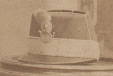 galons de grade en tresse d'argent. Képi de petite tenue avec andeau bleu ciel marqué du numéro du régiment et tresses figurant le grade.