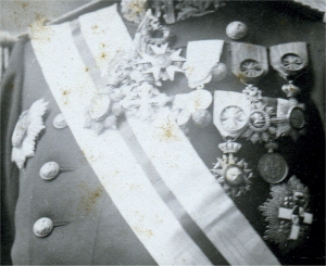 avec plusieurs décorations (grand officier de l'ordre du Cambodge, commandeur de