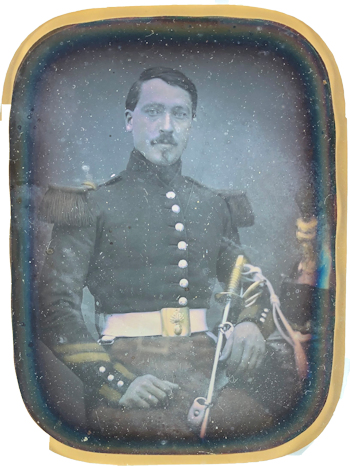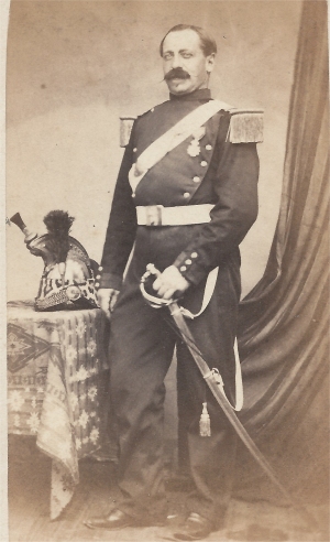 Armement : Pistolet d'officier de cavalerie modèle 1833, sabre d'officier de cavalerie de ligne modèle 1822. En tenue de ville, les officiers portent l'épée d'officier du modèle 1845 ou l'épée d'officier d'état major.