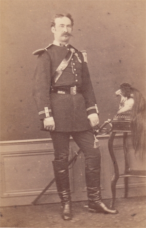 Pierre Paul Marie Broutal est un officier sorti du rang. Il a été nommé Sous Lieutenant au 12e régiment de Dragons en octobre 1869. Après la guerre de 1870, il continue sa carrière comme Lieutenant au 18e Dragons on octobre 1873 (ici sur la photodu photographe Georges à Versailles).