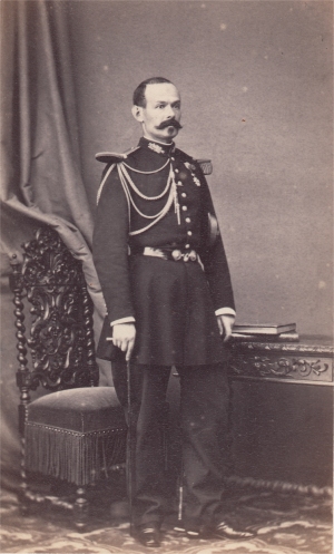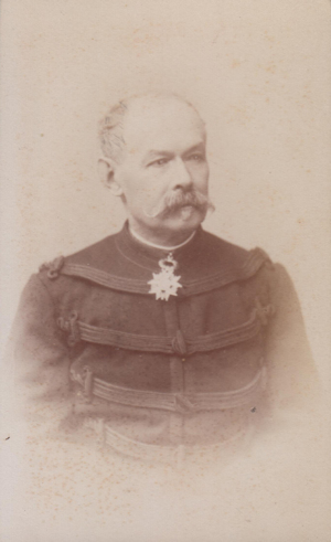 Antoine Marie Louis Broye Né le 1/7/1823 à Salins (Jura), c'est un Saint Cyrien de la promotion d'Orient (1841-1843). Sous Lieutenant en octobre 1844, il est nommé Lieutenant le 1/2/1847. Capitaine le 27/11/1850, il participe à la repression des mouvements populaires opposés au coup d'Etat de 1851, puis sert durant deux années en Algérie. Broye débute sa longue collaboration avec Mac Mahon en étant nommé à son état major en Crimée où il fait campagne de 1854 à 1856. Il y reçoit la croix de la Légion d'Honneur (27/12/1854). il sert ensuite avec le général durant la campagne d'Italie où il est fait officier de la Légion d'Honneur. Chef d'escadron le 12/8/1861, il sert en Algérie à l'état major du Maréchal entre 1864 et 1870. Au déclanchement de la guerre de 1870, il est promu Lieutenant colonel le 15/7/1870 et reste aide de camp du Maréchal. Promu Colonel le 31/12/1871, il est nommé Aide de camp du Président Mc Mahon en 1873, puis Commandeur de la Légion d'Honneur en 1875. Il est nommé Général de brigade le 5/6/1877, puis est promu Général de division le 12/7/1884, commandant la 25e division d'infanterie en 1884. Il est fait Grand Officier de la Légion d'Honneur le 29/12/1887. Placé au cadre de réserve en 1888, il est décédé en 1905. Photos Alary et Geiser (Alger) et Lumière (Lyon) | |