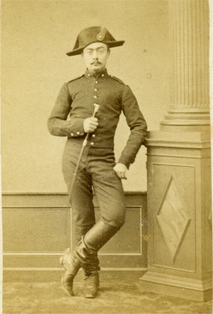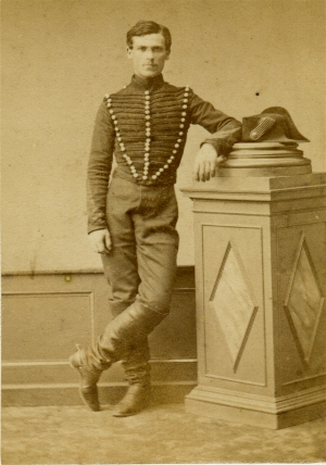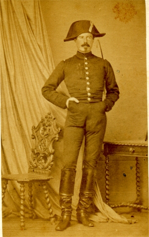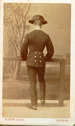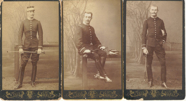 Le 16/7/1870, il est nommé Sous Lieutenant et passe au second escadron du 6e régiment de dragons. Durant la guerre de 70, le régiment est envoyé à l'armée de la Loire. Boursier est nommé Lieutenant officier payeur le 27/11/1870 et fait campagne autour d'Orléans, puis à l'armée de l'Est. Après la guerre, la commission de révision des grades le remet sous lieutenant en 1872. Peut être ecoeuré par cette mesure, ou souhaitant suivre la carrière de son père, Boursier rejoint alors la gendarmerie en octobre 1874 et va y faire une belle carrière, terminant comme Lieutenant Colonel de la 5e légion du Loiret, officier de la Légion d'Honneur en 1899. Photo Le Roch (Saumur) |