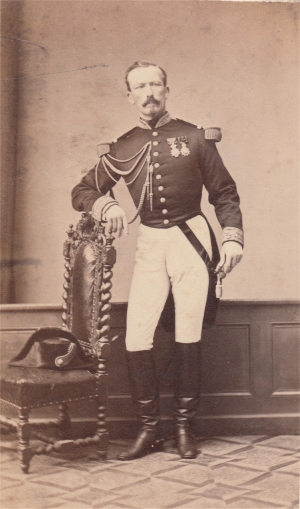 cuirassiers. Rentré en France en avril 1871, il est nommé chevalier de la Légion d'Honneur le 1/2/1872 et, le 26/11/1872, il rejoint le 12e régiment de dragons. Il est promu Chef d'escadrons au 4e régiment de cuirassiers en 1875. Lieutenant Colonel le 17/11/1878 au 3e régiment de dragons, il y est ensuite nommé Colonel. Promu officier de la légion d'Honneur le 17/2/1889, il prend sa retraite en mars de la même année. Il est mort le 29/8/1894. |