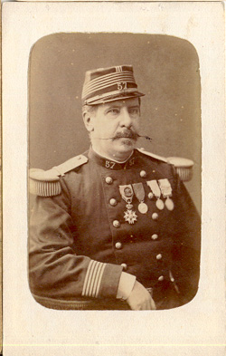 Colonel le 11/2/76 au 57e RI. Chev LH en 1879. En 1879 il demande sa retraite pour raison de santé et se retire au Chateau de Lauture dans le Tarn, profiter de sa grande fortune, augmentée suite au mariage avantageux qu'il a réalisé avec la fille du Banquier Oberkampf.