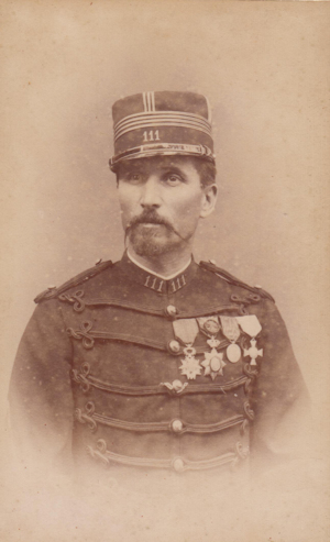 Chef de bataillon le 5/9/1884 au 111e RI, il emmenne le bataillon au Tonkin (il y sert de janvier 1884 à avril 1886) et en revient décoré de la médaille du Tonkin, de l'ordre royal du Cambodge et chevalier de la Légion d'Honneur (17/5/1885).