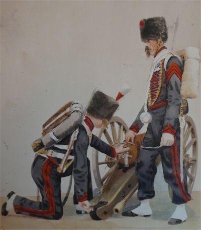 L'artillerie de la Garde se compose de deux régiments : un régiment monté et un régiment à cheval, dont les tenues sont différentes.