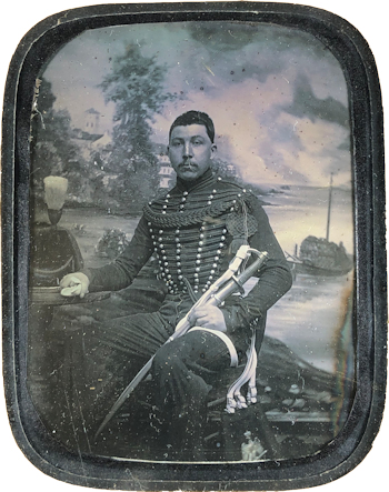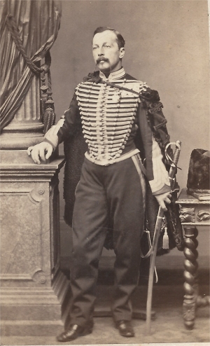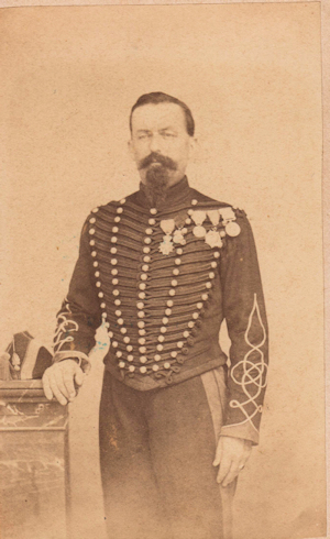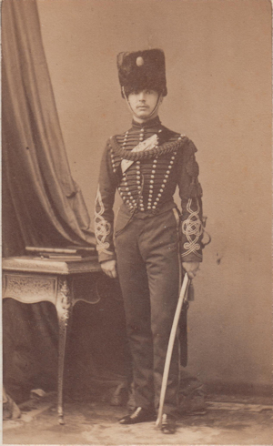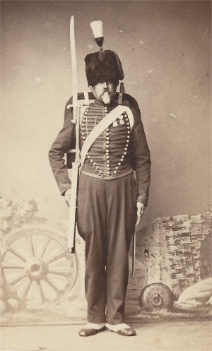 Régiment à cheval : Idem, mais le dolman est orné de 5 rangées de boutons et les hommes portent la sabretache et le cordon de talpack (jusqu'en 1860).