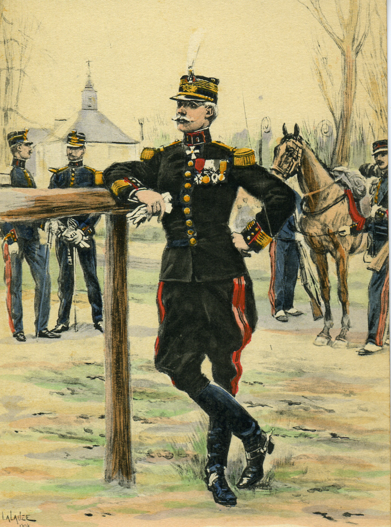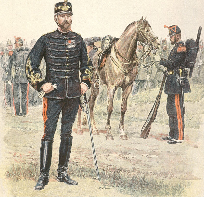 En 1895, les officiers prennent la tunique du modèle général de l'infanterie à une rangée de 7 boutons (9 après 1910).