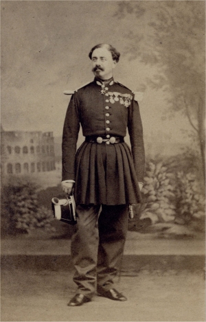 Le chef de bataillon Lepage des Longchamps pose ici comme chef de corps du 20e bataillon de chasseurs lors de sa présence en Italie vers 1860. Sa carrière interrompue par la maladie est résumée dans le Moniteur de l'armée du 21/10/1868 : "Une triste cérémonie rassemblait, il y a quelques jours, devant une