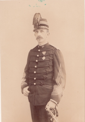 Louis Léonce Frédéric Soyer Né le 2/1/1843 à Ajaccio, c'est le fils du tailleur d'un régiment stationné en Corse.. Elève de Saint Cyr en 1862, puis de l'école d'état major, il est promu Lieutenant le 5/1/1865 et enchaine les stages en régiment, comme tout officier du corps d'état major en début de carrière. La guerre de 70 le trouve en poste au 1er régiment des grenadiers de la Garde avec lequel il fait les batailles de Rezonville et de Saint Privat. Il est promu Capitaine le 15/9/1870 et est compris dans la capitulation de Metz. Après la guerre, il est nommé aide de camp du général de Saint Hillaire, puis du général Abbatucci. En 1876, il rejoint l'Algérie et sert à l'état major de la division d'Oran, puis du général Chanzy, gouverneur de l'Algérie. Nommé chevalier de la Légion d'Honneur en 1879, il fait la campagne de Tunisie entre avril et juillet 1881, et participe aux combats de Ben Metis puis de Beja. Il est fait commandeur du Nicham Iftikar. Le 10/7/188, il est nommé Chef de bataillon, sert au 4e corps d'armée, puis au 66e régiment d'infanterie avant d'être mis à la tête du 20e bataillon de chasseurs à pied le 15/2/1886, poste qu'il occupe trois ans et demi. En septembre 1889, il est promu Lieutenant Colonel au 31e RI, puis en mars 1893, Colonel du 94e RI. Deux ans plus tard, il est nommé chef d'état major du commandement de la défense de la place de Paris et est fait officier de la Légion d'Honneur en 1896. Promu Général de brigade le 19/10/1897, il commande la 83e brigade, puis la 27e division des Alpes après sa nomination coimme Général de division le 1/10/1902. Il finit sa carrière comme Commandeur de la Légion d'Honneur. Il est mort en 1927. Photo Von Bosch (Paris) |