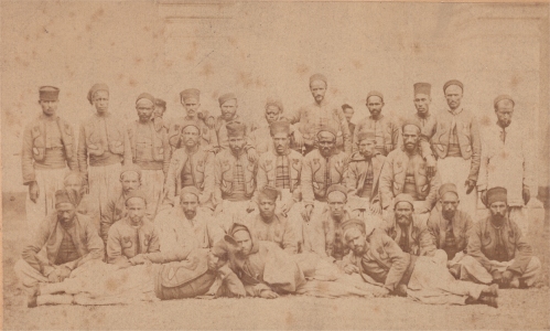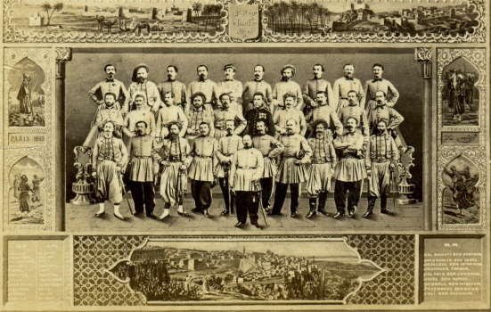 Entre février 1865 et janvier 1866, un bataillon du régiment est désigné pour servir en France, en garnison avec l'infanterie de la Garde Impériale. A cette occasion, Prévot, le photographe attitré de la Garde Impériale, réalise ce photomontage, associant les portraits individuels des officiers du bataillon sur une unique carte de visite. On y distingue notamment la commandant