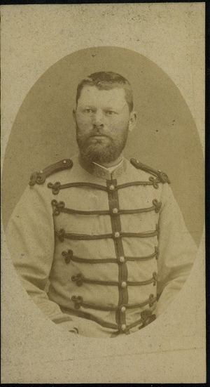 Louis Mathieu Victor Garilhe Né le 17/4/1852 à Lagorce (Ardêche), il s'engage pour la durée de la guerre le 17/7/1870 comme cavalier au 9e régiment de cuirassiers. Le 25/10/1870, il passe au 52e régiment d'infanterie, puis au 43e régiment de marche. Il y est nommé sergent fourrier en janvier 1871. A la fin de la guerre, il signe un nouvel engagement pour trois ans au 15e régiment d'infanterie. De nouveau promu sergent en 1872, il est nommé adjudant en novembre 1874, au 142e régiment d'infanterie. Garilhe suit les cours de l'école militaire d'infanterie (St Maixent) en 1875, dont il sort 19e sur 333 élèves. Promu Sous lieutenant le 18/5/1876, il reste au 142e régiment d'infanterie. Affecté dans les bataillons envoyés au corps expéditionnaire de Tunisie (avril à juillet 1881), il est promu Lieutenant le 10/7/1881 et passe au 22e RI, affecté au corps d'occupation. Le 15/1/1885, il passe au 4e régiment de Tirailleur algérien pour rester en Tunisie. Promu Capitaine le 22/2/1888, il rejoint le 2e régiment de Zouaves. En septembre 1888, il est nommé capitaine adjudant major au 72e régiment d'infanterie et est nommé chevalier de la Légion d'Honneur le 28/12/1889 et retourne en métropole. En aout 1893, il revient en Tunisie servir au 4e régiment de tirailleurs algériens et y est nommé adjudant major en fevrier 1898. Il est promu Chef de bataillon le 2/4/1902 au 142e RI. Les garnisons metropolitaines ne lui convenant décidément pas, il passe comme major au 4e régiment de tirailleurs algériens en 1904 et retourne à Tunis. Il prend se retraite en 1905 après avoir été promu officier de la Légion d'Honneur le 30/12/1905 et se retire à Tunis où il sert dans l'armée territoriale. Il est mort centenaire. |